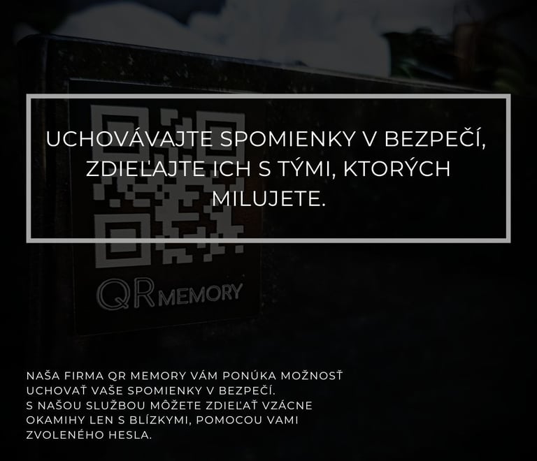 Vaše súkromie je pre nás prioritou. Ponúkame Vám možnosť rozhodnúť sa, kto bude mať prístup k Vašim spomienkam. Môžete si vybrať, či bude Váš QR kód verejne prístupný, aby každý mohol spoznať príbeh Vášho blízkeho, alebo si môžete zvoliť súkromný prístup chránený heslom.