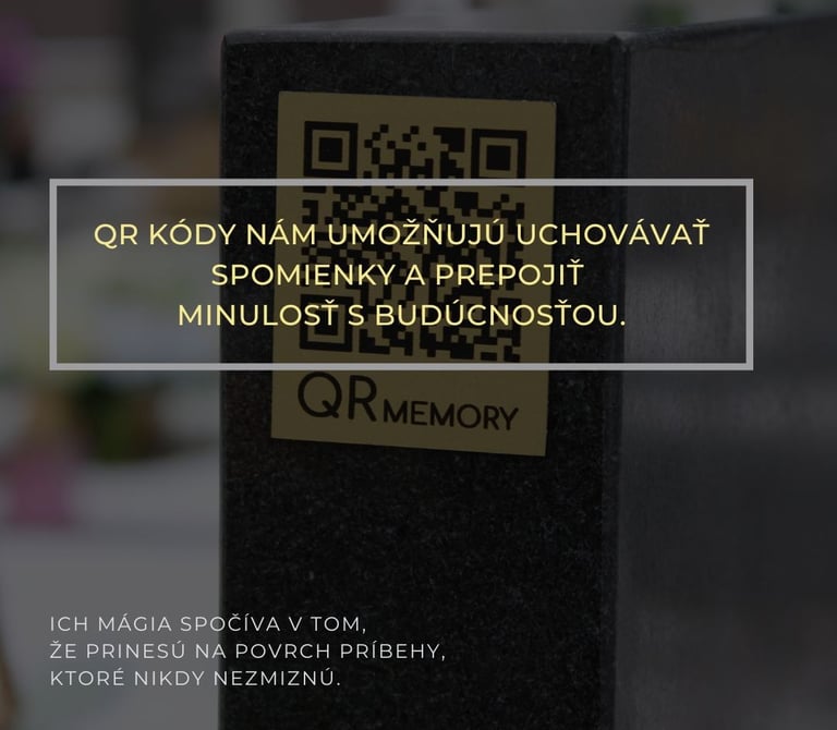 Ponúkame jedinečné QR spomienkové tabuľky na náhrobné kamene, ktoré Vám umožnia mať živé spomienky na Vašich blízkych len jedným kliknutím.